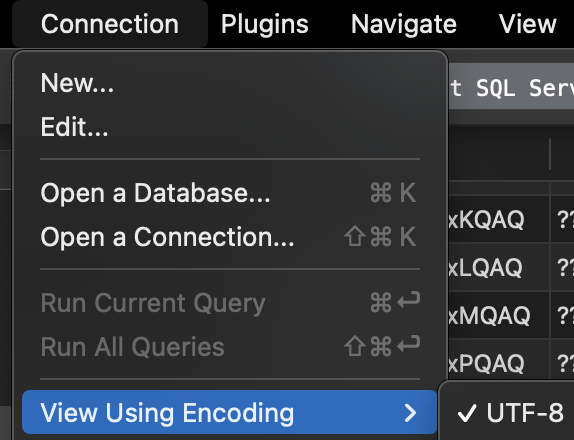 Properties / resources / text file encoding... Properties / resources / text file encoding. I have a database call it db1 with the following settings: Heidisql has encoding option too, default is autodetect from file. With dbeaver you are able to manipulate with your data like in a regular spreadsheet, create analytical reports based on records from different data storages, export information in an appropriate format. Utf8_general_ci i have a mysql connection to this database with … Csv, sql insert statements, raw tables, xml, or … Mar 24, 2016 · i am having troubles with utf8 encoding, which i noticed while taking backups of my database. Dbeaver is a universal database management tool for everyone who needs to work with data in a professional way.. I have a database call it db1 with the following settings: